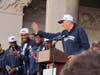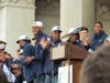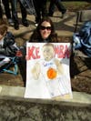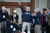 When it was his turn to address the capacity crowd, Calhoun was greeted with a standing ovation. He said that although it was his third such rally on the steps of the state Capitol, celebrating a national championship “doesn’t get old.” The men’s team won the NCAA champions in 1999 and 2004 as well.