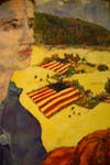 The painting features Lady Liberty floating above Croghan's Simsbury scenery. Croghan continues to change the text on descriptor tablets, which depending on the version, read "Brave Mother is Waiting," "Brave Mother is Watching" and most recently "Summon Our Better Angels."