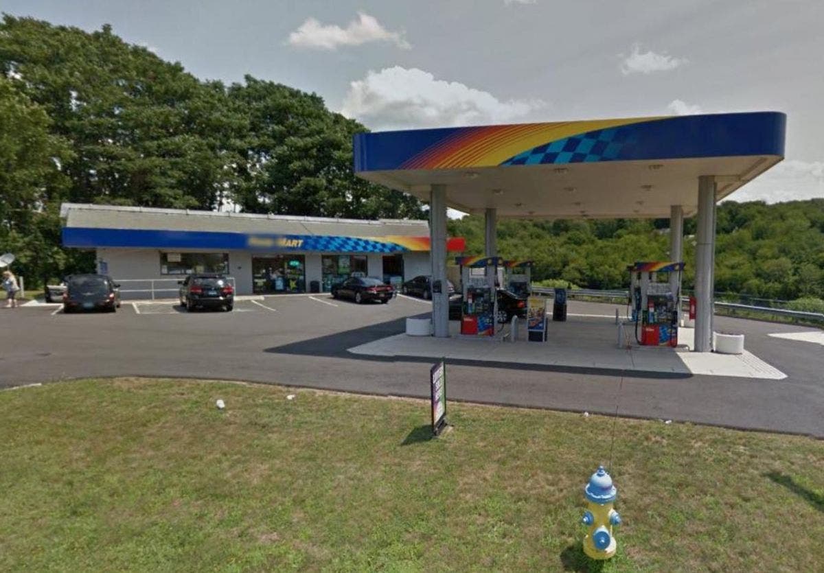 Brett Smith, 42, was hospitalized after he drove his car into the Sunoco station at 957 West Street shortly after 8:30 p.m., police said.