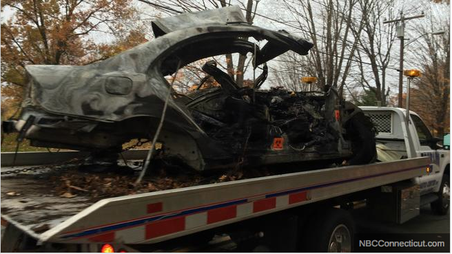 According to an NBC Connecticut report, Berlin police received a call at 3:44 a.m. Nov. 1 from someone reporting a car fire near the 1400 block of Kensington Road. Police said they believe a Mercedes was southbound and when the driver rounded a curve at about 3:30 a.m., lost control and hit a tree and burst into flames.