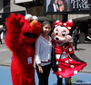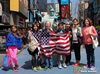 Students had a few hours to travel around the city, in separate smaller groups with teacher and parent chaperones, before heading over to the theater to see the performance. Some students ate lunch outdoors on tables in the center of Times Square as they listened to a band playing music on the street corner. Afterwards students posed with a live Statue of Liberty impersonator, complete with painted face, pointed crown, robe, torch and the American flag. Students also posed with live Elmo and Minnie Mouse characters.
