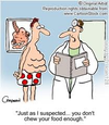 Chewing uses the enzymes in saliva to start digestion. Chewing is extremely important, yet oftentimes overlooked. For healthy digestion food must be chewed thoroughly. Incomplete chewing leaves large food fragments too big to be digested, on which bacteria can grow, leaving undigested food in the colon causing flatulence, and other symptoms of indigestion or much worse medical conditions. Some of these conditions can get very serious and call for all those MRI’s and CAT scan, highly profitable antacid meds, and other very expensive stuff that the AMA, the Pharmaceutical companies and the rest of the medical profession love.