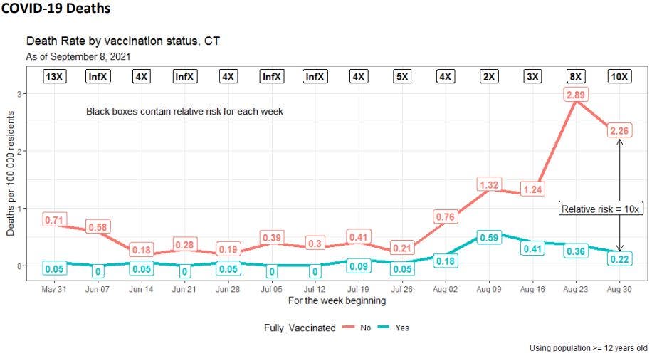 Although coronavirus deaths in Connecticut have declined markedly since February, it is important to note that death — and hospitalization — rates have consistently been higher among unvaccinated persons compared to fully vaccinated persons.