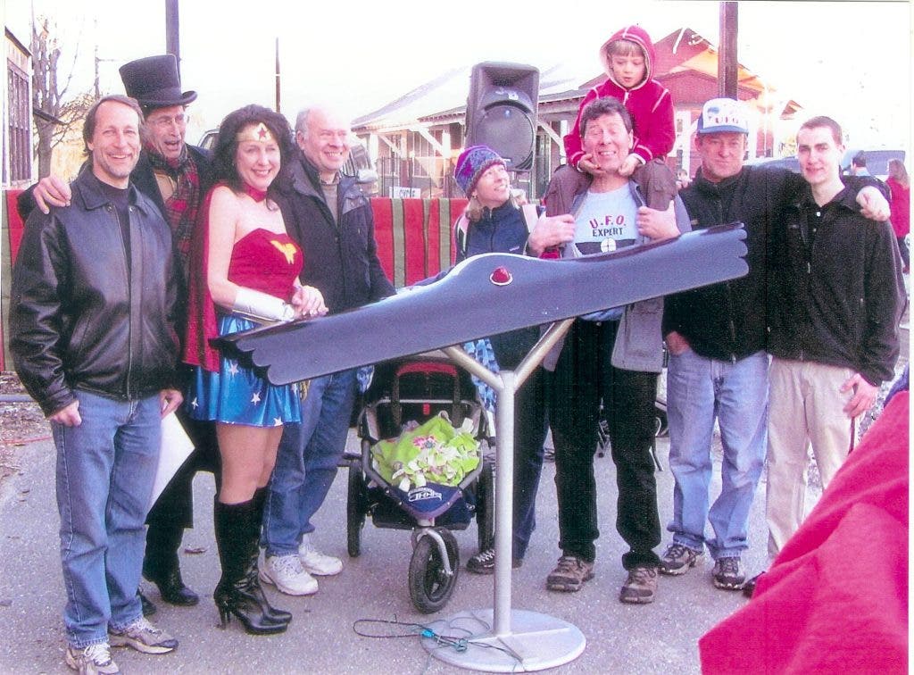 On March 10th, about two dozen residents paid homage to Vaghi, a Bethel resident who welcomed friends from all places, especially extra-terrestrials. The celebration honored Vaghi's first UFO sighting in 1950. Wonder Woman aka Eileen Jelinski, Paul Vaghi, Nino Vaghi, nephew of Dante, Dave and Nick Barzetti from Barzetti Welding, and several other family and friends of Dante came to Barnum Square to remember him.