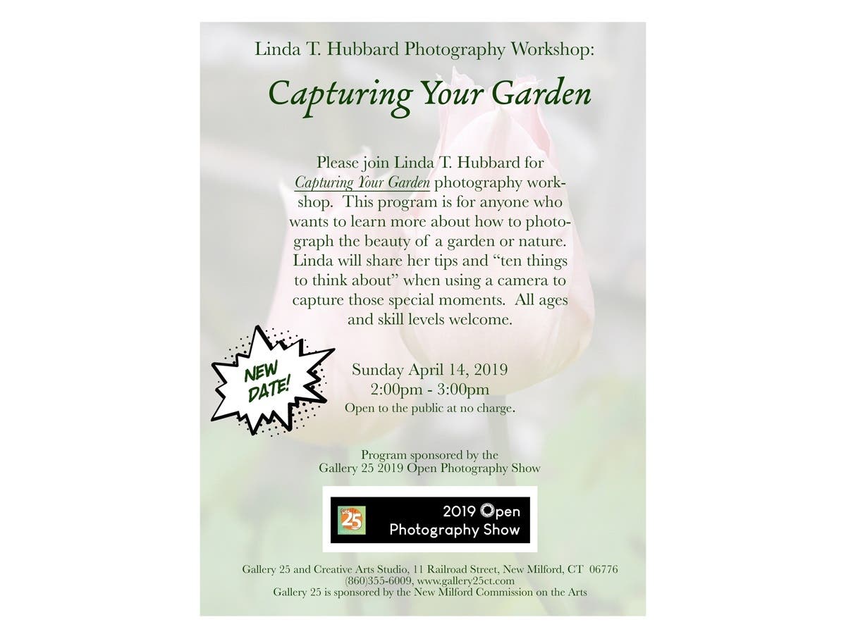 Gallery 25 and Creative Arts Studio invite you to attend their Photography Workshop, “Capturing Your Garden” presented by Linda T. Hubbard, on Sunday, April 14th from 2-3PM. This program is for anyone who wants to learn more about how to photograph the beauty of a garden or out in nature. As a nature photographer, Linda finds beauty in things that others might overlook, but through the lens, sees a whole different world. Linda will share her tips and her 10 things to think about when using a camera to capture those special moments. All ages and skill levels are welcome to attend the workshop. It’s open to the public at no charge.