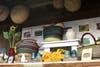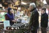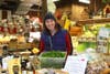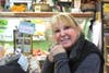 Colorful shopping baskets now hang above the case where the greens are kept cool, artfully arranged by Barbara DeLong, who is also helping out at the shop for the winter.