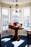 Pointing to the tall windows that line every wall, she said, “The entire design is whimsical and part of that comes from the Victorian house itself and all of this sunlight.”
