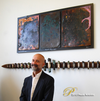 The detail and creativity of the art was spectacular, starting with an extra-large-triple-wheels sculpture "Menage aTrois" on the front exterior of the building by Michael Seri, or his "Composition III" watercolor, mixed media on copper, and "Paris" figural head lamp, in the first gallery room.