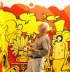 Wall art from Stephi Kix, "Hello Someone" and "Rainboy" made from toys, acrylic, cardboard and neon tubing, was mesmerizing.