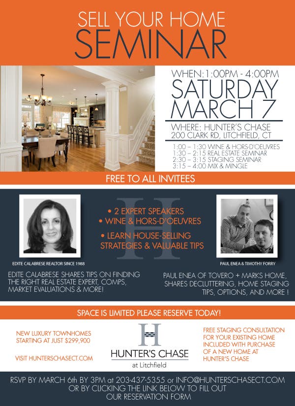 Join two expert speakers at Hunter's Chase this Saturday for tips and tricks to sell your home this Spring!