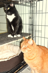 Sammy and Sissy(black & white) have lived their whole life with their loving owner. They were all very happy. Some years ago, their owner found out that Sissy has a degenerative eye condition. We double checked her with our vet as well. She has no blood vessels in the backs of her eyes. Hence, Sissy is fairly blind. She probably sees shadows and shapes, but that's about it. And she does not require any medication. So, imagine what a heartbreak it must have been for everyone when their loving owner lost his home and had no place to keep his companions safe. A friend housed them temporarily, but it seemed the time was coming when he would have to turn them in to a shelter. He was devastated about having to put them in a city shelter. What would happen to Sissy without her Sammy?