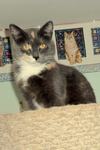This lovely dilute torti/calico is about three years young. Cute as a bug, Cynthia takes a little time to warm up to new people. But once she knows you, she'll love you!
