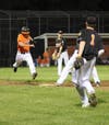 Amoroso didn’t allow a base hit during the first three innings but Scott Heinz led off the bottom of the fourth inning with a two-bagger down the right field foul line, a wild pitch and one of Amoroso’s three balks spoiled his bid for a shut out. Shelton’s other run came off relief pitcher Dane Simone in the bottom of the seventh inning. He walked Frank Talcik and two outs later, he scored on Mike Dew’s single up the middle.