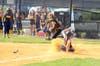Still trailing 8-3, Amity seemingly had runners on the corners when Jenn Post spanked a base hit. The alert Tiger defense saw that Blydenberg had taken a very generous turn around third base. A quick throw from left fielder Nina Zimmitti nailed Blydenberg, who was unable to get safely back to the base. Seeing the action focused on the third base, pinch runner Julie Luce tried to sneak over to second base, but was also cut down. Instead of runners on the corners with only one out, Amity had run itself into a bizarre, inning-ending twin killing. The Black and Gold meekly went down in order in the bottom of the seventh inning.