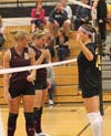Heading into the fifth and final game, the match was deadlocked at 2-2. Amity’s Alyssa Mirmina got the game going by landing a service ace. Sydnee Sousa and Caitlyn Sousa followed with back-to-back kills. A pair of errant hits by the Titans’ Katie Reed made it 5-0.
