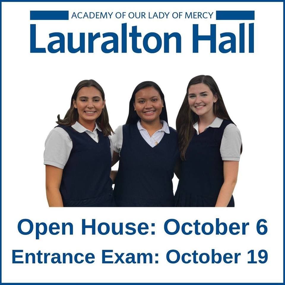 Eighth grade girls are invited to register for the Entrance Exam to be held Saturday, October 19, 8:00 A.M.