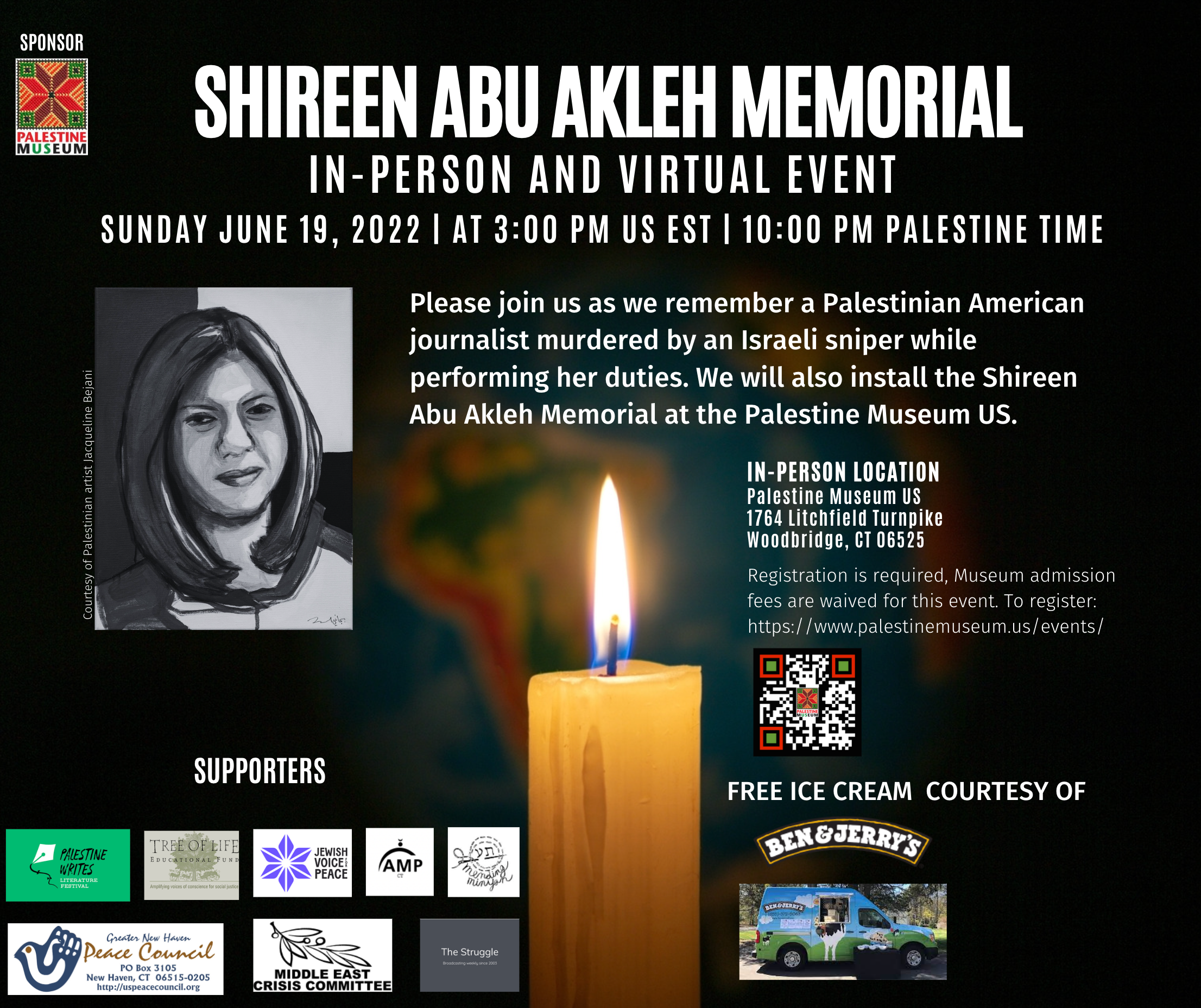 Woodbridge - A memorial event in honor of Palestinian-American journalist Shireen Abu Akleh will be held on Sunday, June 19 at 3 p.m. US EST (10 PM Palestine Time) at the Palestine Museum US, which is located at 1764 Litchfield Turnpike, Woodbridge, CT.