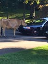 Police responded to the area of Spring Valley Road after someone reported a cow or bull walking down the street, police said.