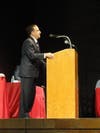 At a reception prior to the proceedings, several staff members of BHS spoke, including Principal Lee Panagoulias and Superintendent Hamlet Hernandez, along with First Selectman Unk DaRos.