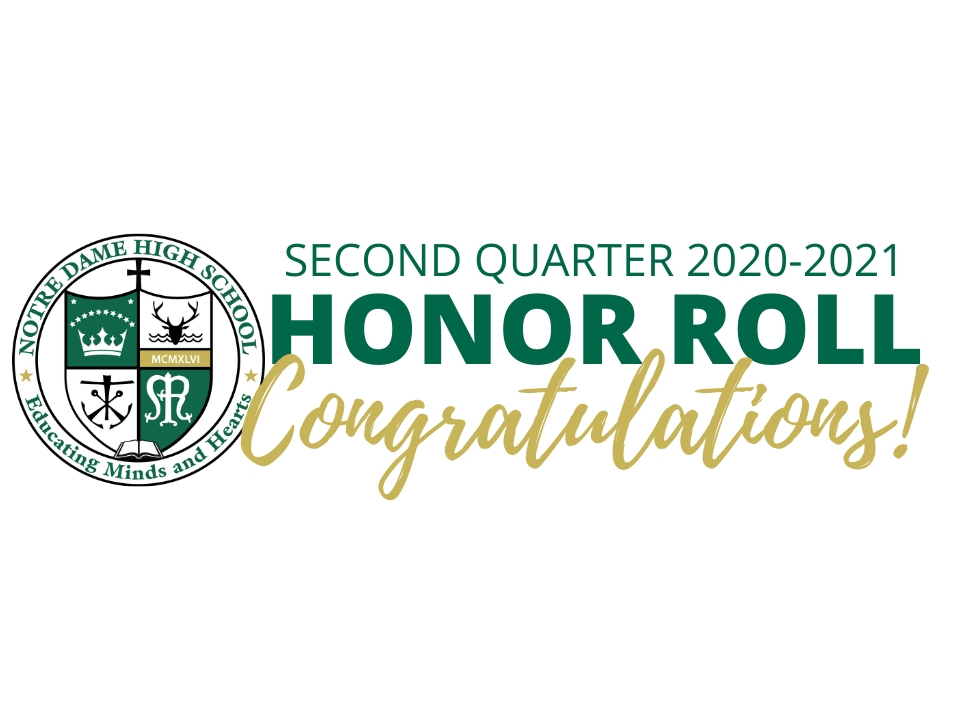 Notre Dame High School recently announced the Honor Roll for the Second Quarter of the 2020-2021 academic year.
