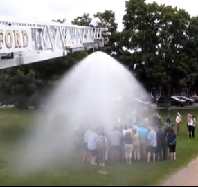 The Branford Fire Department assisted Town Hall employees in taking part in the ALS Ice Bucket Challenge.