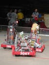 The robot created by the students, Barry details, must run on its own for several minutes at the start of a match via programming. After that, the drivers of the team can man the robot to earn points.