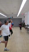 The class is led by Zumba instructor Laura Quillia who compliments her crowd of about eight regular participants stating, “They are getting a great opportunity and these guys are troopers.”