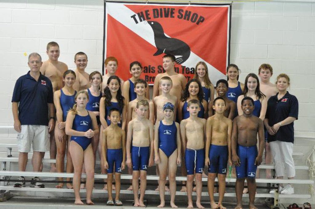 Swim team practices are held in the Dive Shop’s Brookfield facility at 439 Federal Road, and meets take place at indoor and outdoor pools in the region.