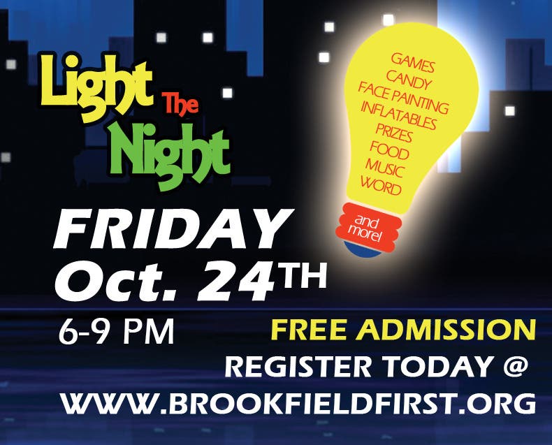 What is Light the Night: A fun filled night for families with kids Toddler - 6th grade. There will be carnival style games, bounce houses, candy, snacks, crafts, movies, music and much more!