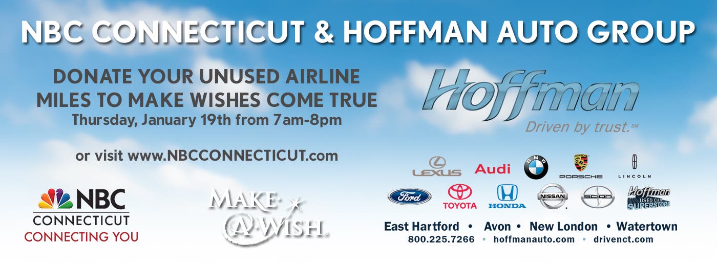 Hoffman Auto Group and NBC Connecticut partner with Miles For Smiles campaign to collect unused airline miles for Make-A-Wish CT children.