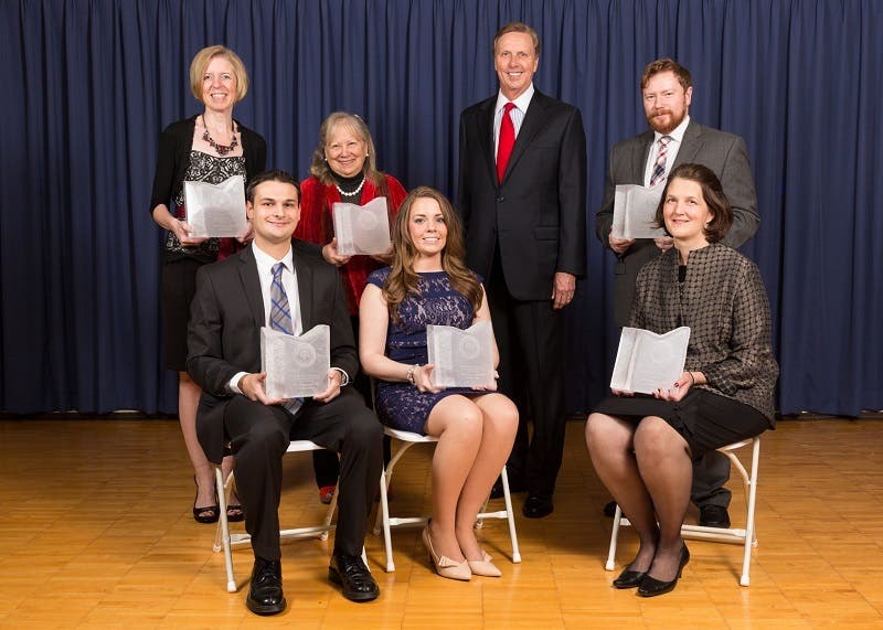 Six employees received Quinnipiac University’s most prestigious honor from the Center for Excellence in Teaching and Service to Students at an Oct. 23 ceremony in the Recreation Center on the Mount Carmel Campus.