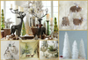 Vintage inspired holiday decor reminds us of holidays from years past. Muted colors, natural tones, sparkling metallics and bright whites define this more elegant and warm style for the holidays. Traditional textures, mercury glass, classic ornaments, simply decorated trees, antique glasses, touches of evergreen and nostalgic decor define this style. Group vintage accents and accessories together and pair with a few clean, modern elements to create an updated look.