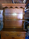 couches, china hutch, Oriental rugs, small dorm fridge, bathroom storage