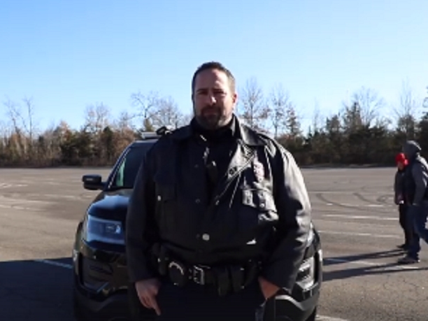In the video, titled “A Wintertime Message From Your Friends At New Britain Police Department,” Officer Barbagiovanni gets out of his police vehicle, which is running, in an empty parking lot. He walks toward the camera to make a statement.