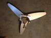 Sleek, propeller look to this ceiling fan. 3 lights that can be directed where you need them. Works great. Needs one light bulb as it just burned out. Perfect for a man space or kids room! Took it down last night-still working and we have all parts including ceiling mount. Asking $75.