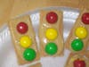Here is an edible traffic light made with the peanut butter you just made (or you can use store-bought, of course).