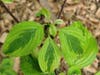 If you are looking for a shrub that holds it’s variegation in the shade, consider planting Golden Shadows pagoda dogwood (Cornus alternifolia ‘Golden Shadows’). Technically, Golden Shadows is more of a small tree than a large shrub, but its pearly lime-green leaves that brighten up your shady corner will make you forget that fact.