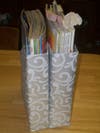 I have quilt magazines, sewing patterns, and craft magazines all in these holders. They look so much neater on my bookshelf and I can cover them in the décor of the room.