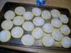 I place the cookies on a cookie sheet with a small space in between, as the cookies will not spread. I take one egg white, brush it over the cookie, and add a bit of sugar.