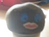 Next, tie a knot at the end of the dirt and cut off excess sock, leaving a tail. This will allow the head to soak up water. Now add eyes and lips to your face. I used foam sheets and a hot glue gun.