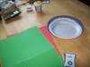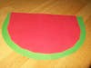 Start by taking green and red paper and using a plate cut out a half circle of green. Do the same using a bit smaller plate in red.