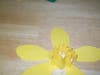 Now glue the center to the petal base. When the glue is dry, glue the whole flower to the paper stem made the same way as you did the pussy willow one.