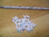 Start by rolling the edge of a piece of newspaper or, as I used, an outdated clothing catalog. Place a pencil diagonally at the edge and roll. Place a dot of glue at the end and let the pencil slide out.