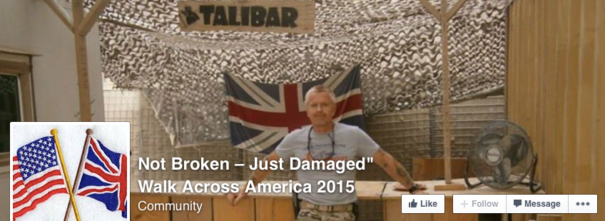 Photo credit: “Not Broken - Just Damaged” Walk Across America 2015 Facebook page.