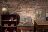 Built in the 1960s with bricks taken during the demolition of the Balmforth Avenue School, this charming, beautiful, tiny study in the history of study sits in the back of the DM&HS property at 43 Main Street. Given the presence of its more dramatic neighbors it’s easy to overlook. But, don’t do that. It’s spare, matching our notions of what education must once have been like, and eclectic. There are ancient books and furniture collected from the basements and attics of various Danbury schools, but also the quintessential pencil sharpener and 12” electric wall clock more reminiscent of the 1950s and 60s. The rough feel of the brick interior and the warmth radiating from the iron stove will take you back to a time before.