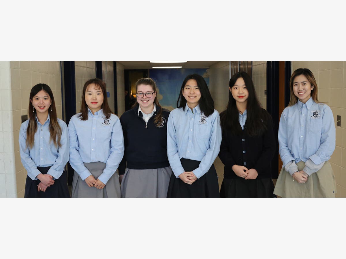 Sarah Bohling of Brookfield, Yuxuan Brittany Hu of Ridgefield, Wenqi Angela Lai of Brewster, Qianer Kris Lu of Ridgefield, Zhiwei Catherine Wang of Ridgefield and Mozhu Cindy Zhao of Bethel had a perfect score of 800 on the math portion of their SAT.