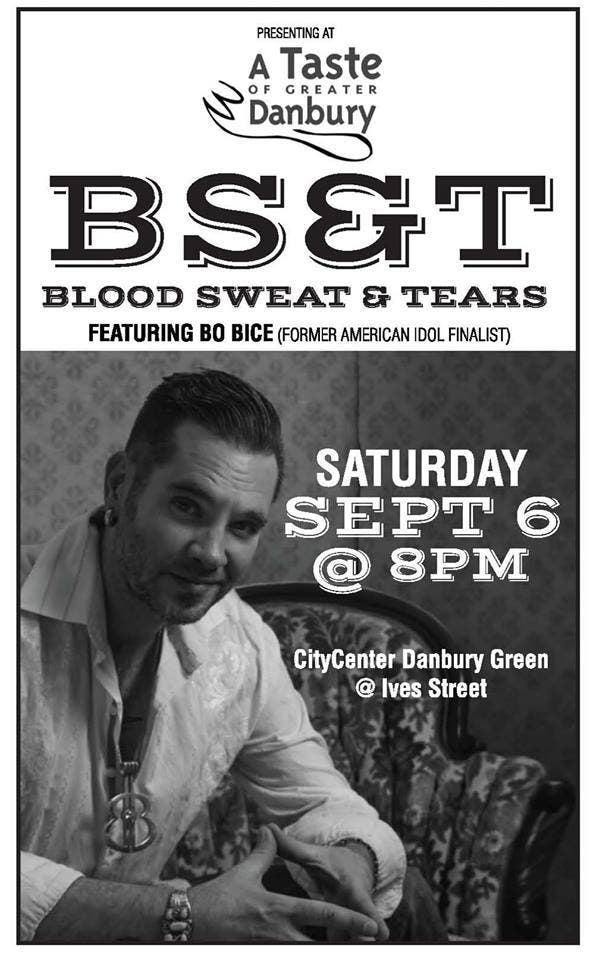 In addition to dozens of vendors and exhibits, there’s a very special treat in store this year. They’ve made us so very happy and now you can be glad that Blood, Sweat & Tears will come back into our lives, if only for a day! Yes, it’s true. Blood Sweat & Tears, most famous for hit songs You’ve Made Me So Very Happy, Spinning Wheel, And When I Die, will be playing A Taste of Danbury with American Idol finalist Bo Bice as their vocalist.