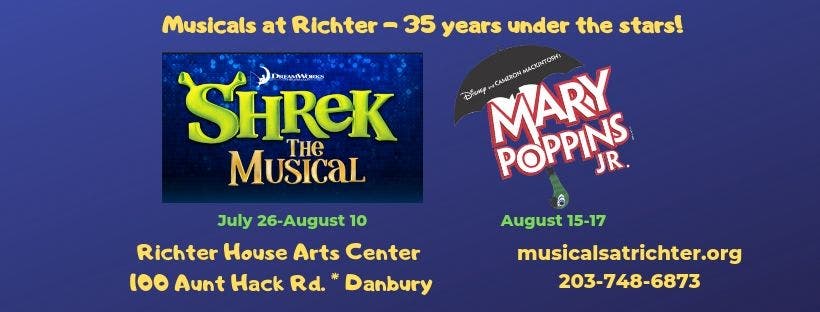 Danbury, CT - SHREK is the 100th show to be presented at Musicals at Richter. This is quite a milestone for CT’s longest-running outdoor theater and I was pleased to attend a performance under the stars during the second weekend of the run. The stars on the stage shone just as brightly as those in the sky on the back lawn of Richter House.