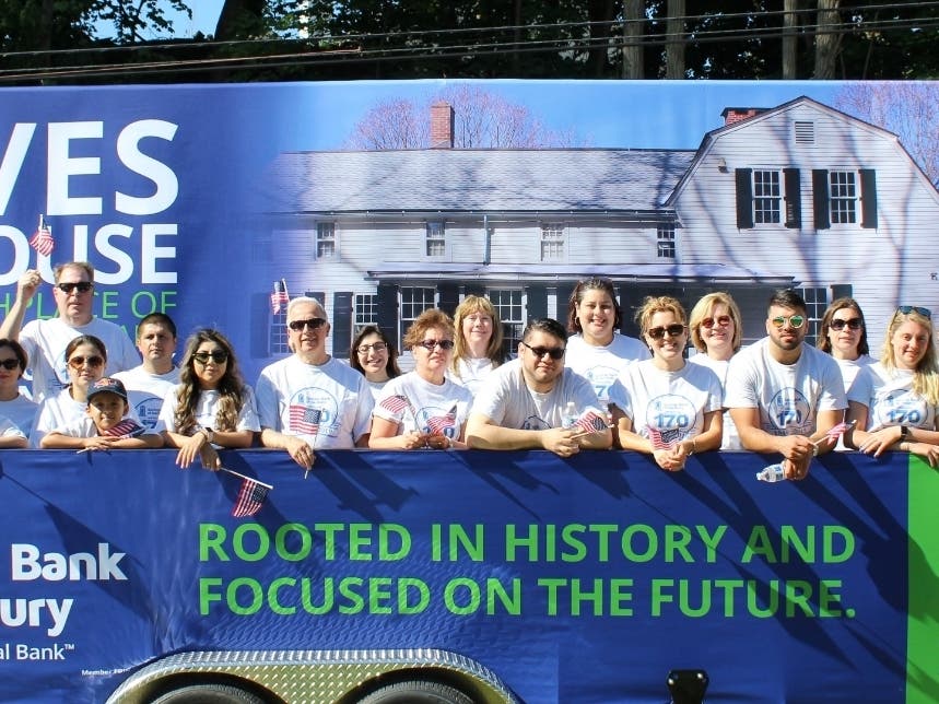 In celebration of veterans and its 170th anniversary this year the bank sponsored a float of the Ives House, birthplace of Charles Ives. George W. Ives founded the Savings Bank of Danbury in the original Ives House and George E. Ives, the son of the bank’s founder, served as a bandmaster for the Union Army during the Civil War.
