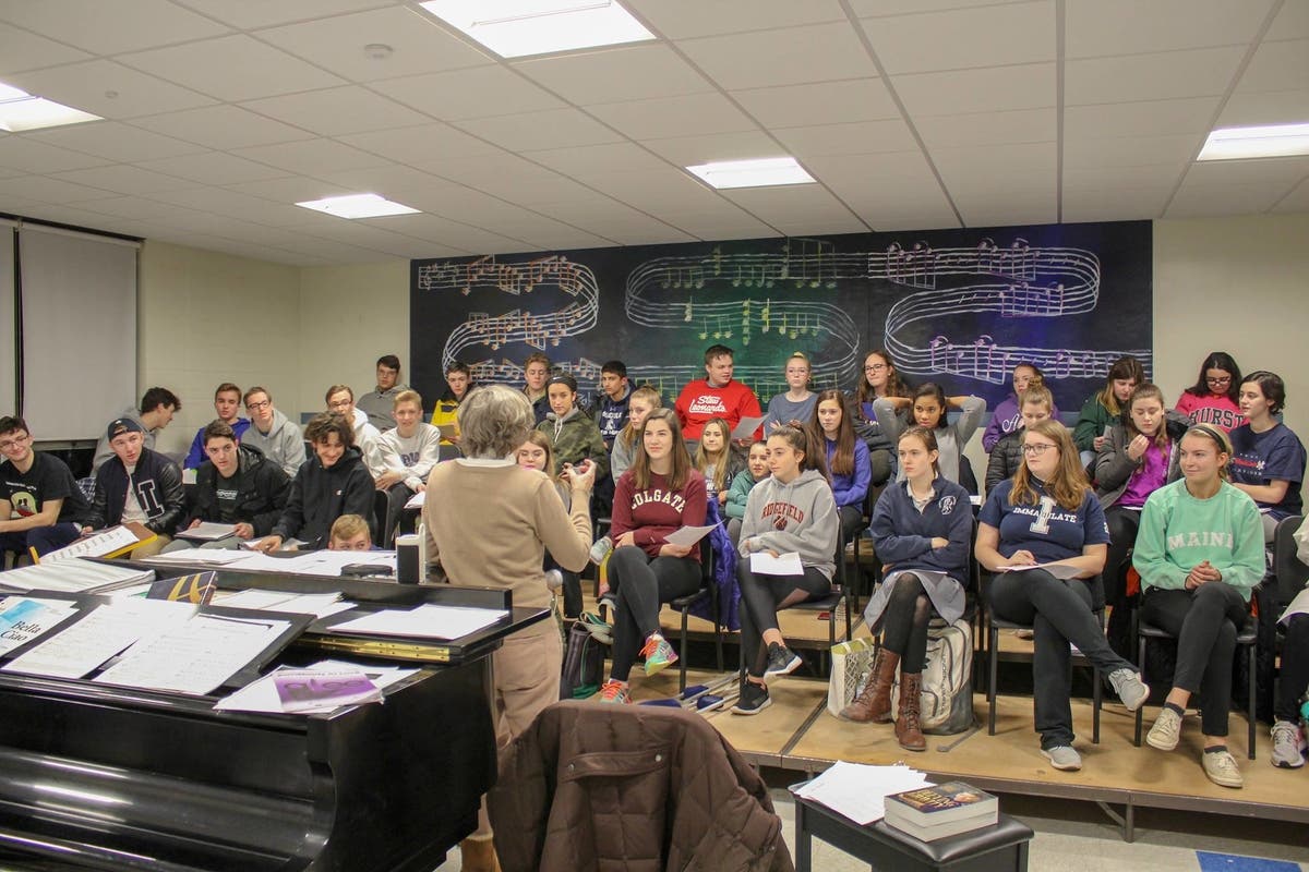 Carol de Giere, Mr. Schwartz's biographer, visited with the cast and crew of the upcoming show at Immaculate High School in Danbury.